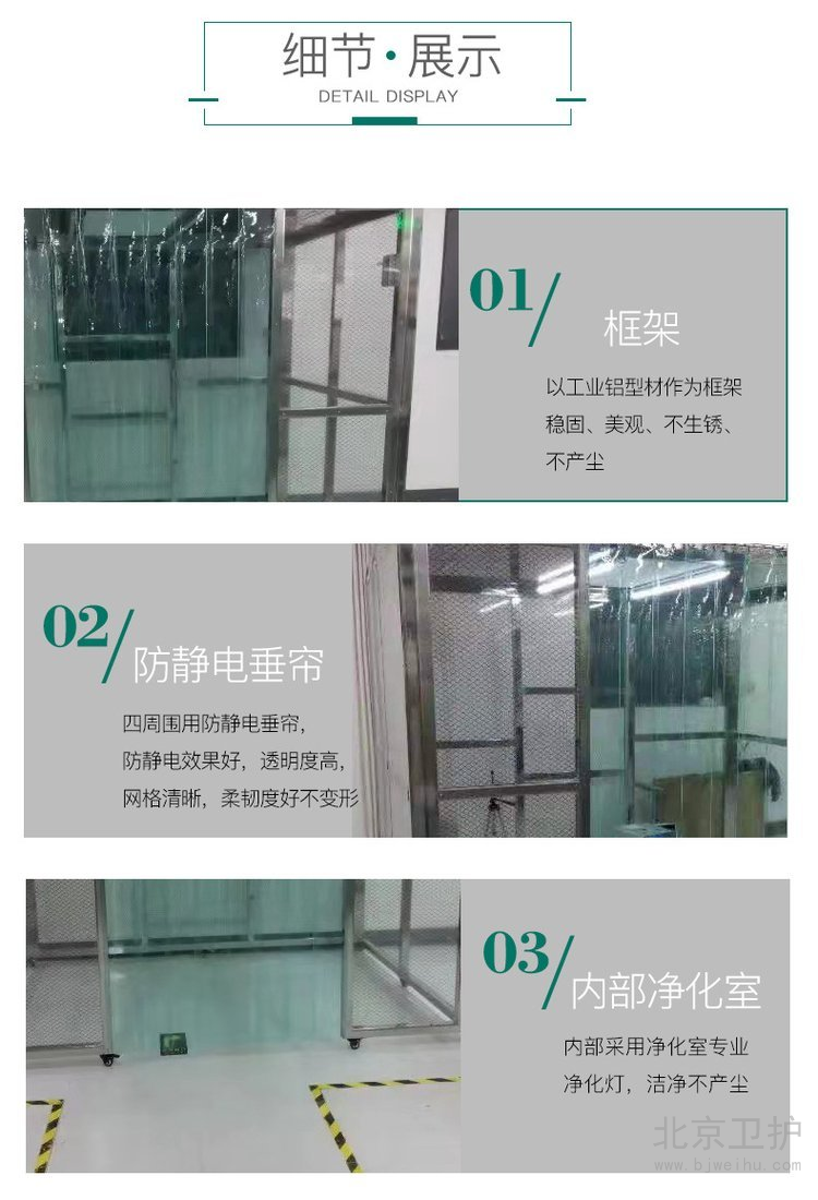 潔凈工作棚(簡稱:潔凈棚)(CLEAN BOOTH)是為快速方便建立的一座簡易潔凈室,潔凈棚具備多種潔凈等級(jí)及空間搭配可以根據(jù)使用需求設(shè)計(jì)制作,因此其簡便運(yùn)用彈性大安裝容易且施工期短以及可移性為其主要特點(diǎn),潔凈工作棚同時(shí)可針對(duì)在一般等級(jí)的潔凈室中局部地區(qū)需要高潔凈度的地方做局部增設(shè)以降低成本。潔凈工作棚是一種可提供局部高潔凈環(huán)境的空氣凈化設(shè)備。潔凈棚主要由箱體、風(fēng)機(jī)、初效空氣過濾器、阻尼層、燈具等組成,外殼噴塑。該產(chǎn)品既可懸掛,又可地面支撐,結(jié)構(gòu)緊湊,使用方便。可以單個(gè)使用,也可多個(gè)連接組成帶狀潔凈區(qū)域。